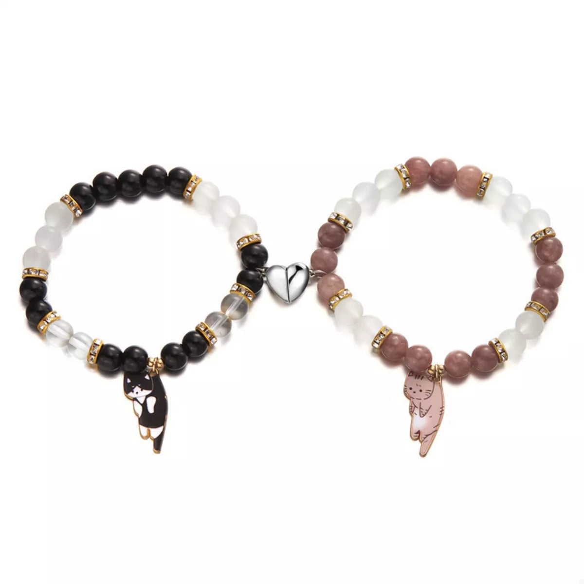 2 Piece Beaded Cat Charm Bracelet -