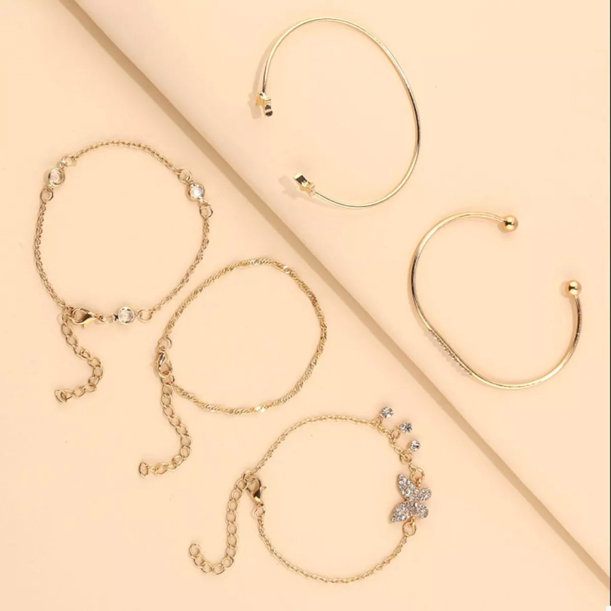 5 Piece 18K Gold-Plated Butterfly Bracelet -