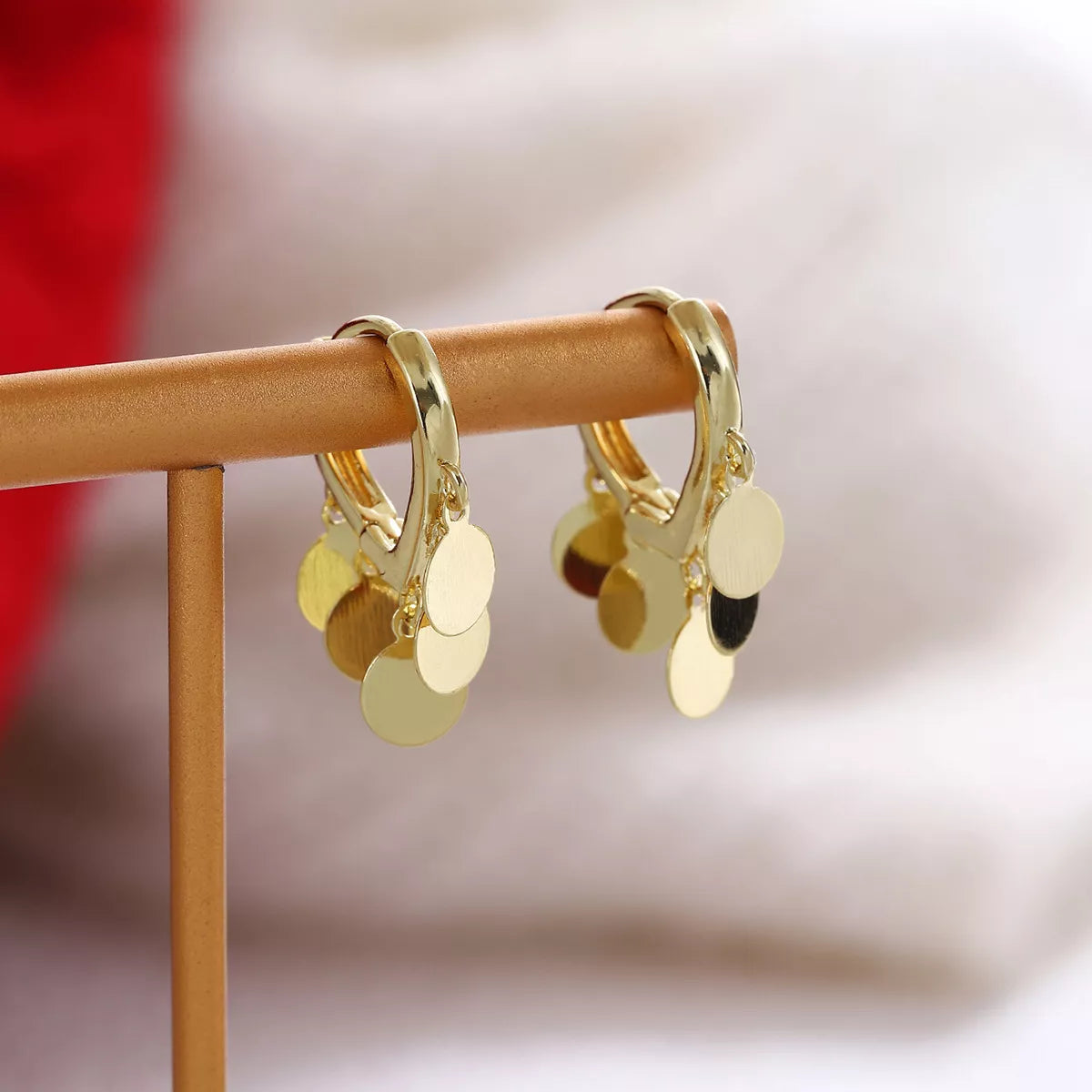 18K Gold-Plated Drop Hoop Earrings with Dangling Disc Charms -