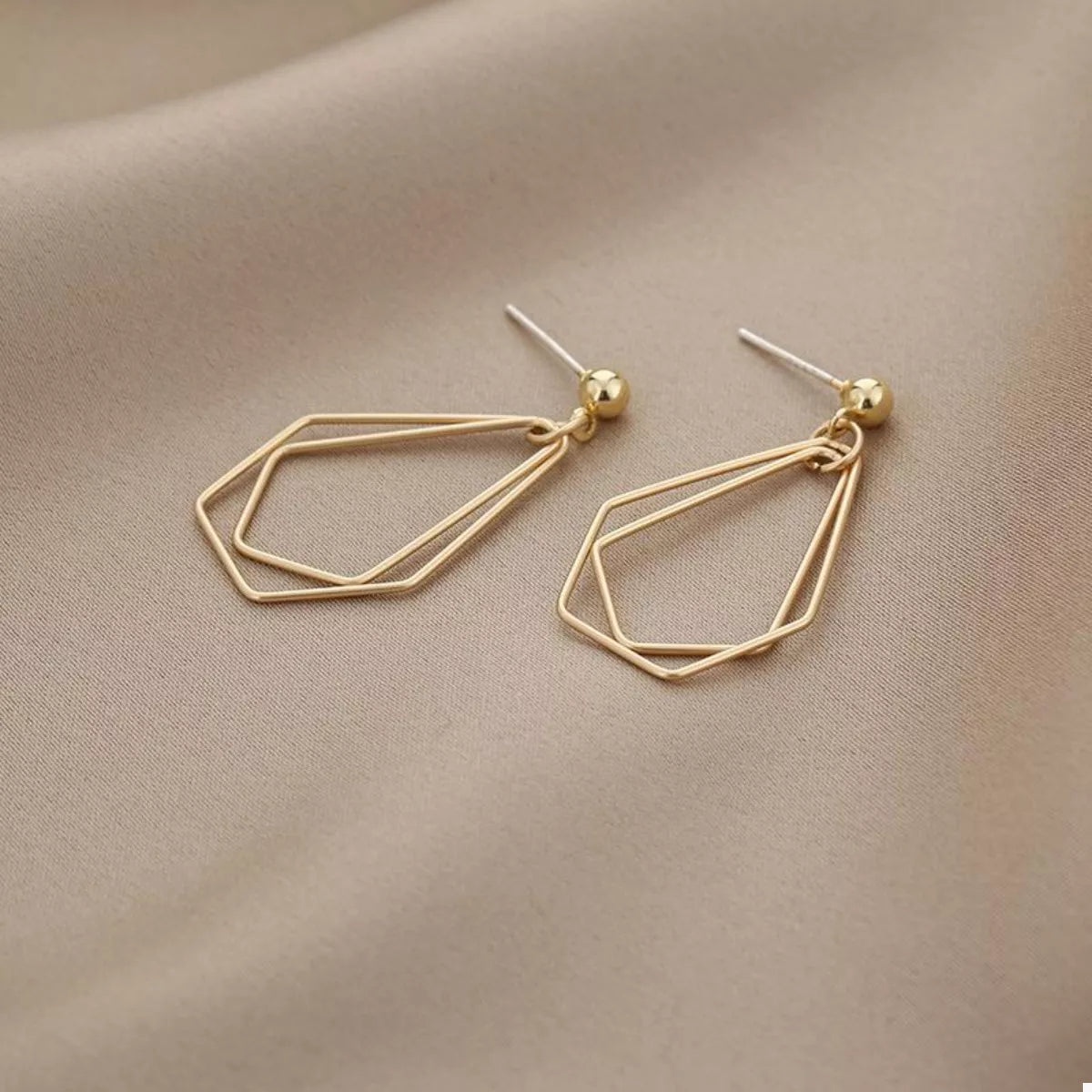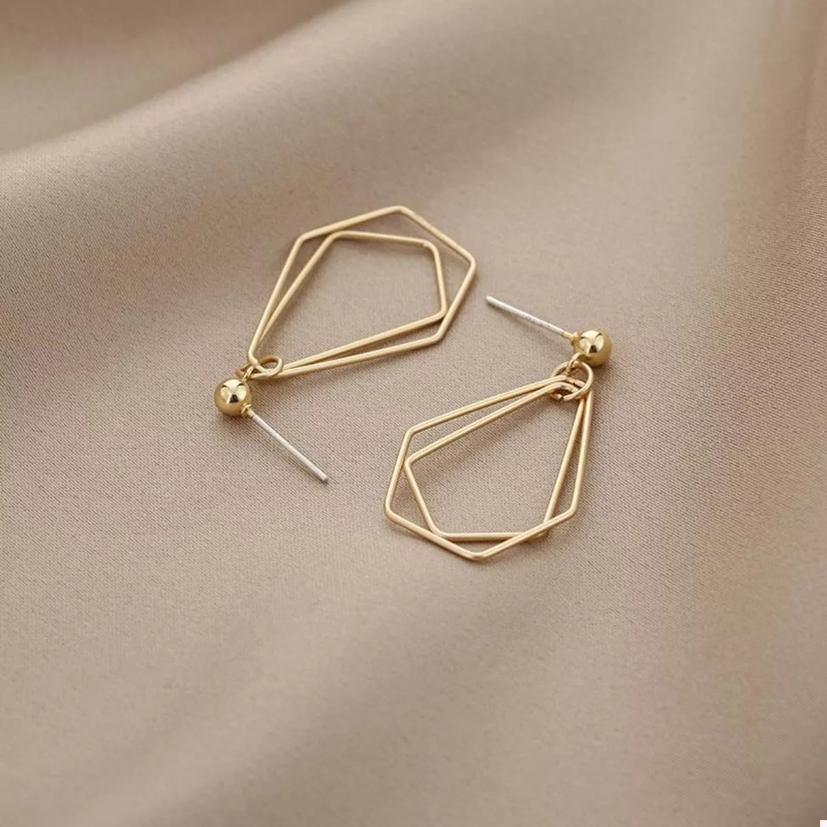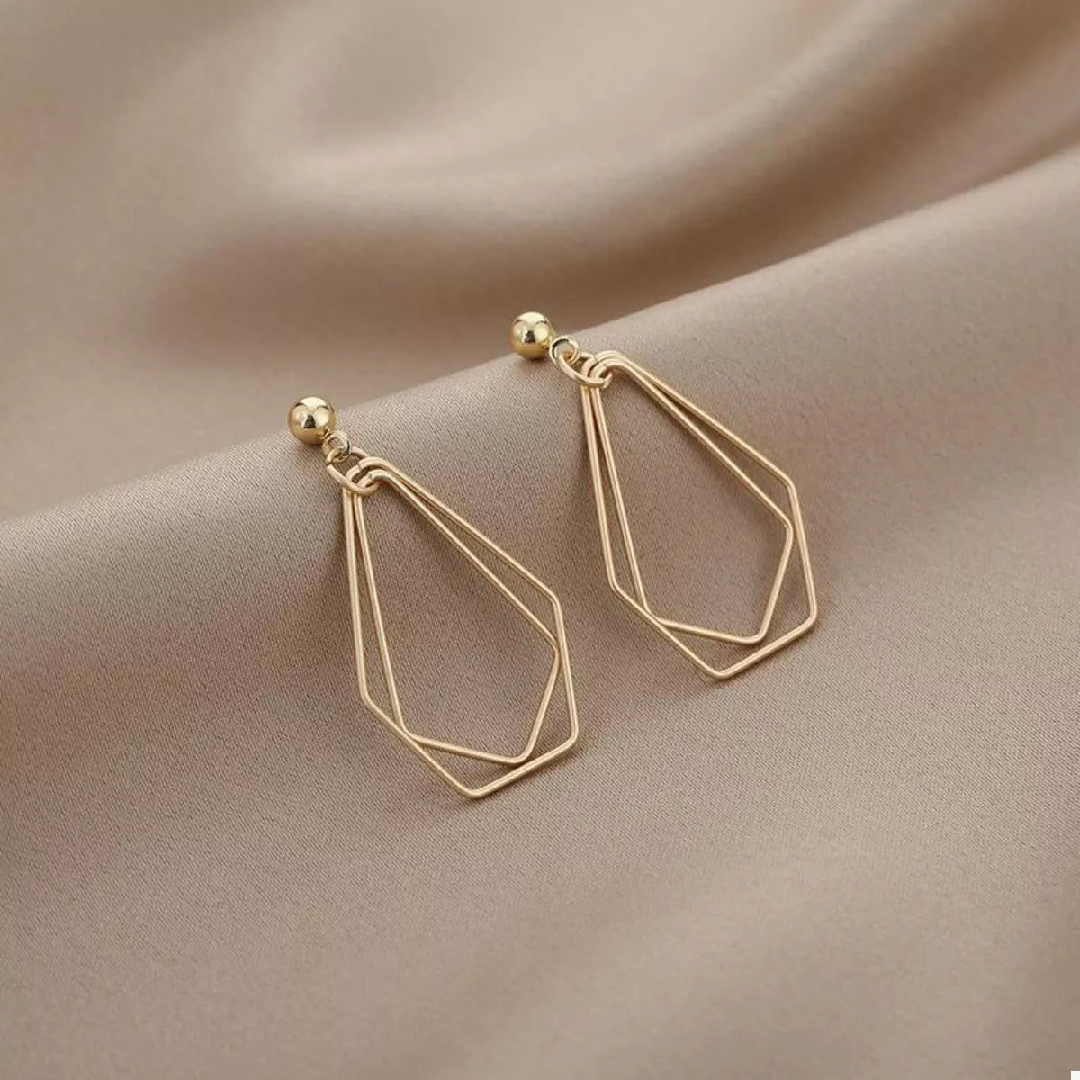 18K Gold-Plated Alloy Geometric Wire Drop Earrings -