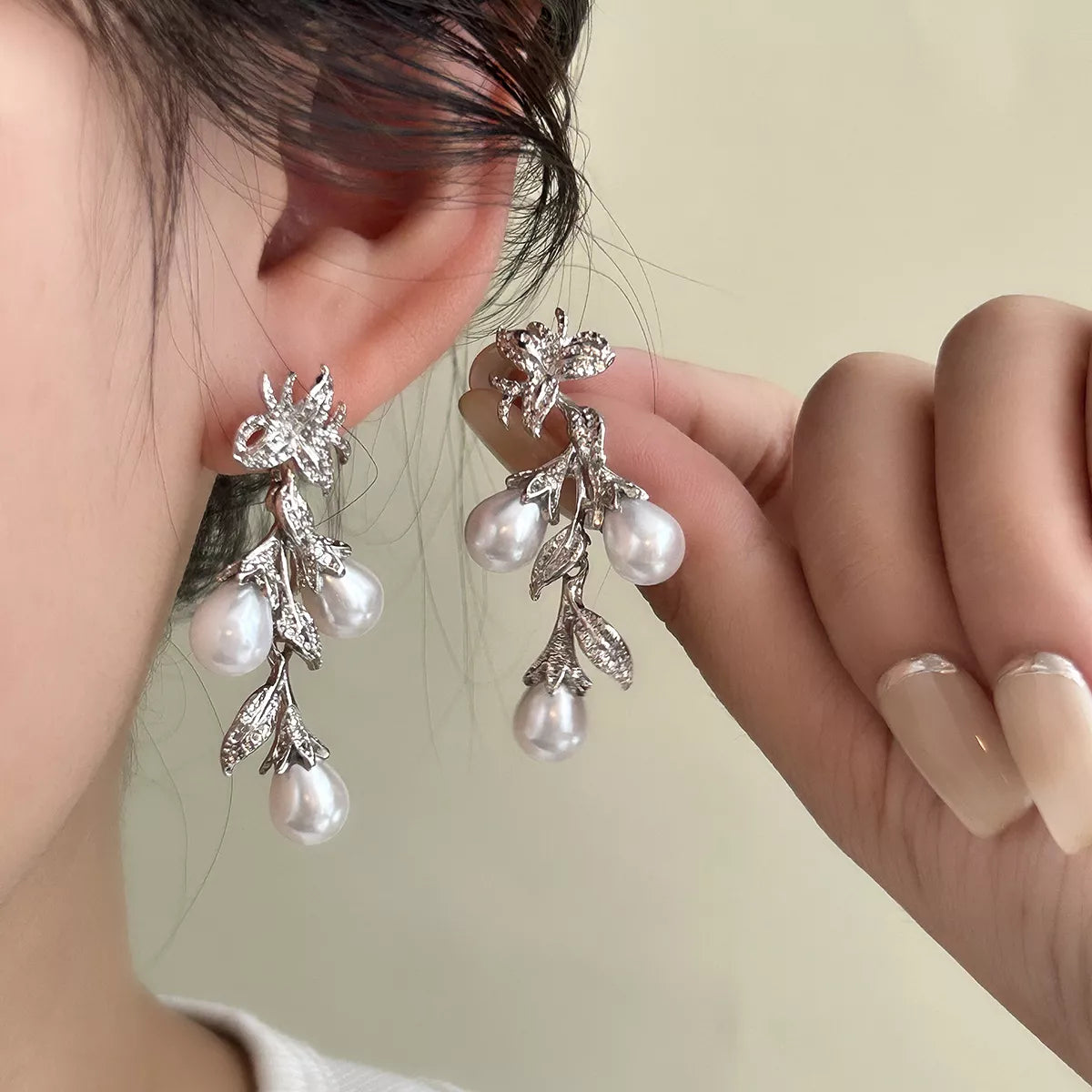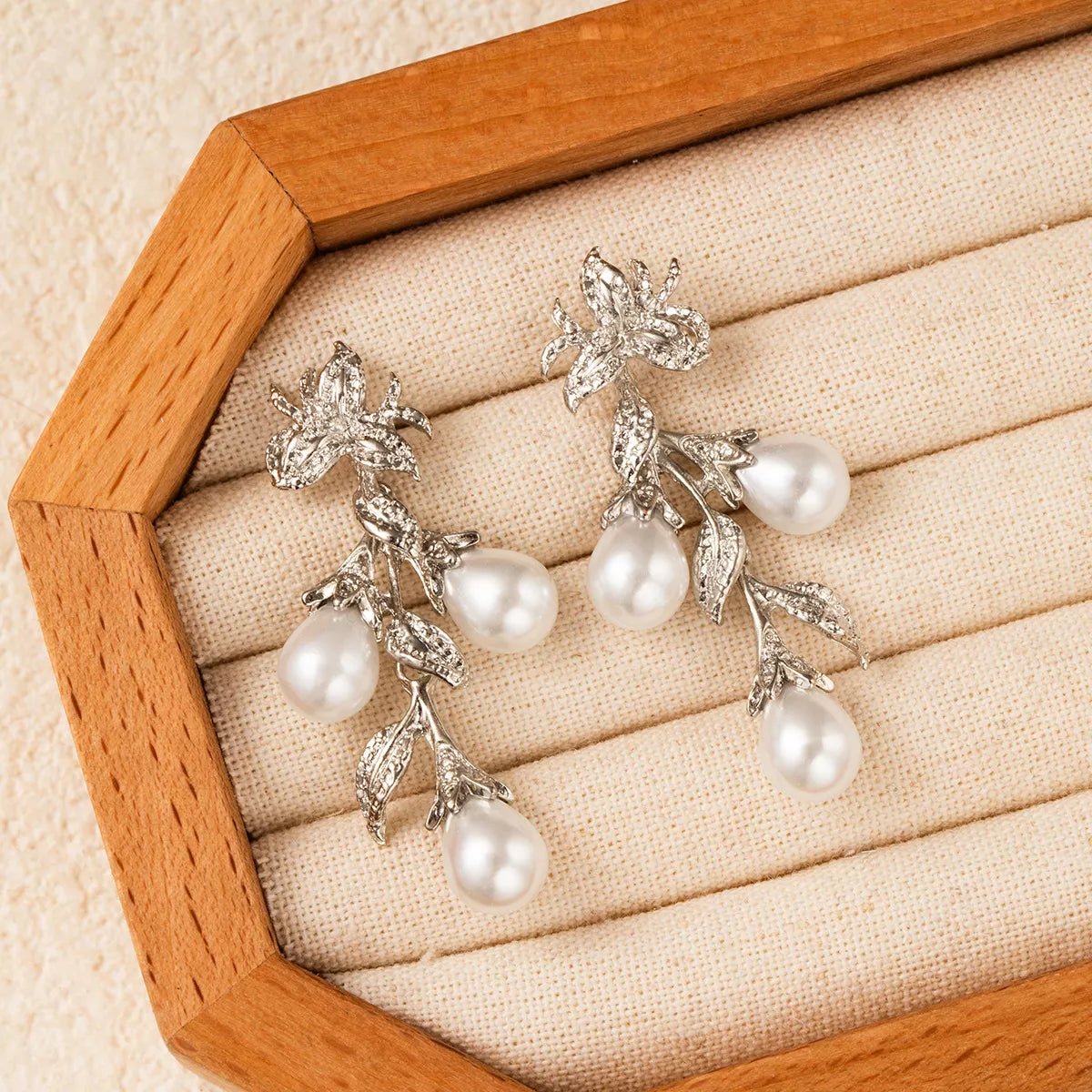 Flower Synthetic Pearl Branch Earrings -