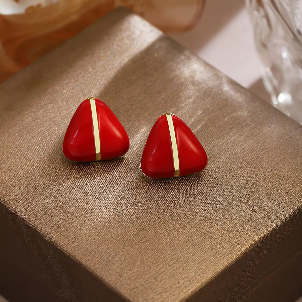 Geometric Triangle Stud Earrings with Gold Accent -
