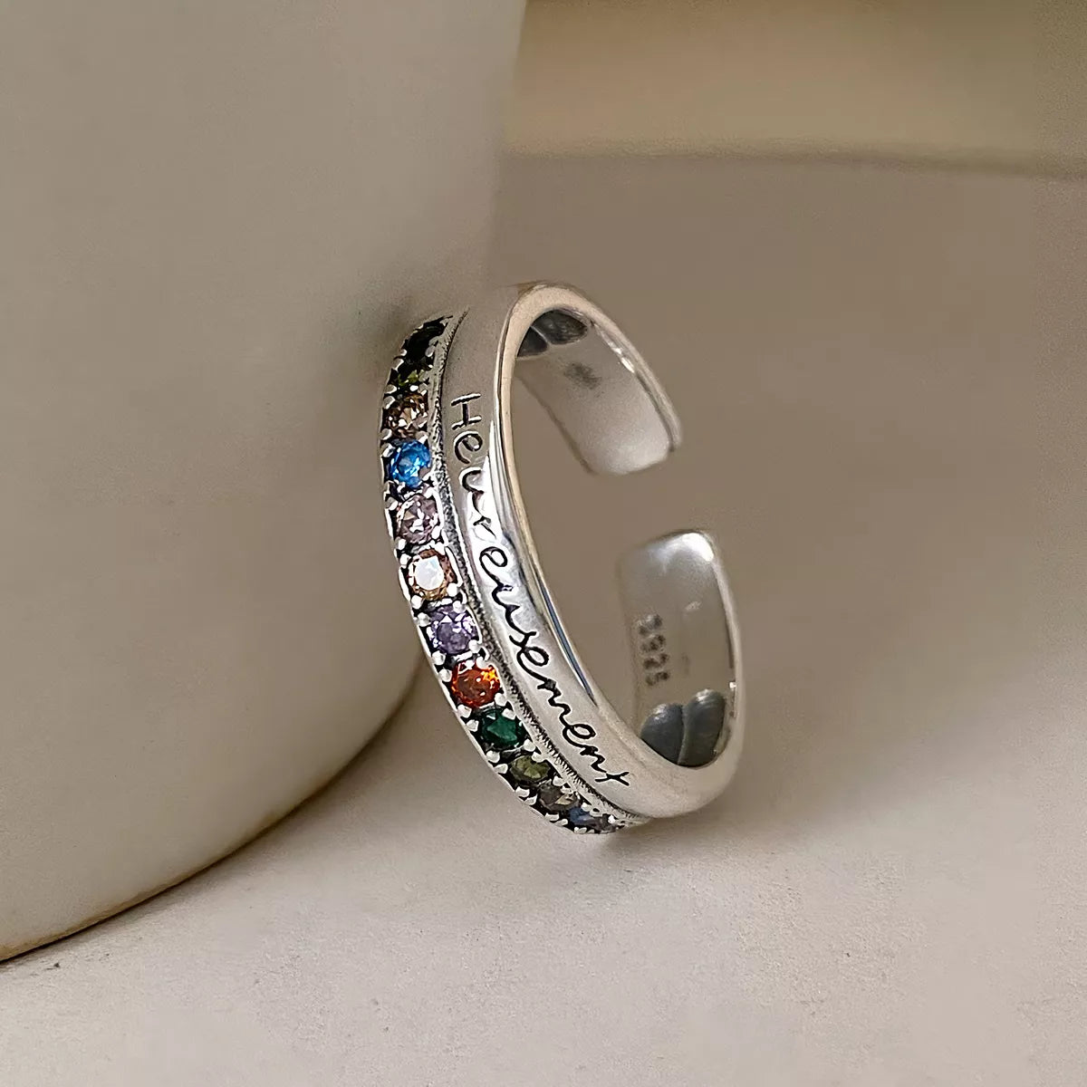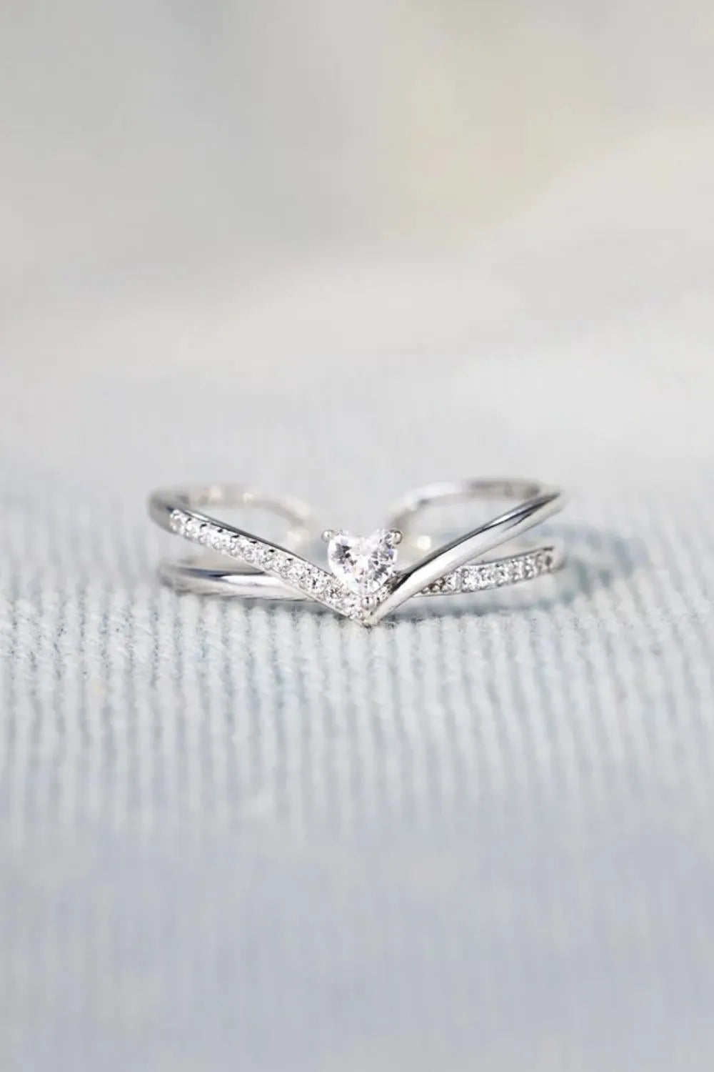 925 Sterling silver Inlaid Zircon Heart Open Ring -