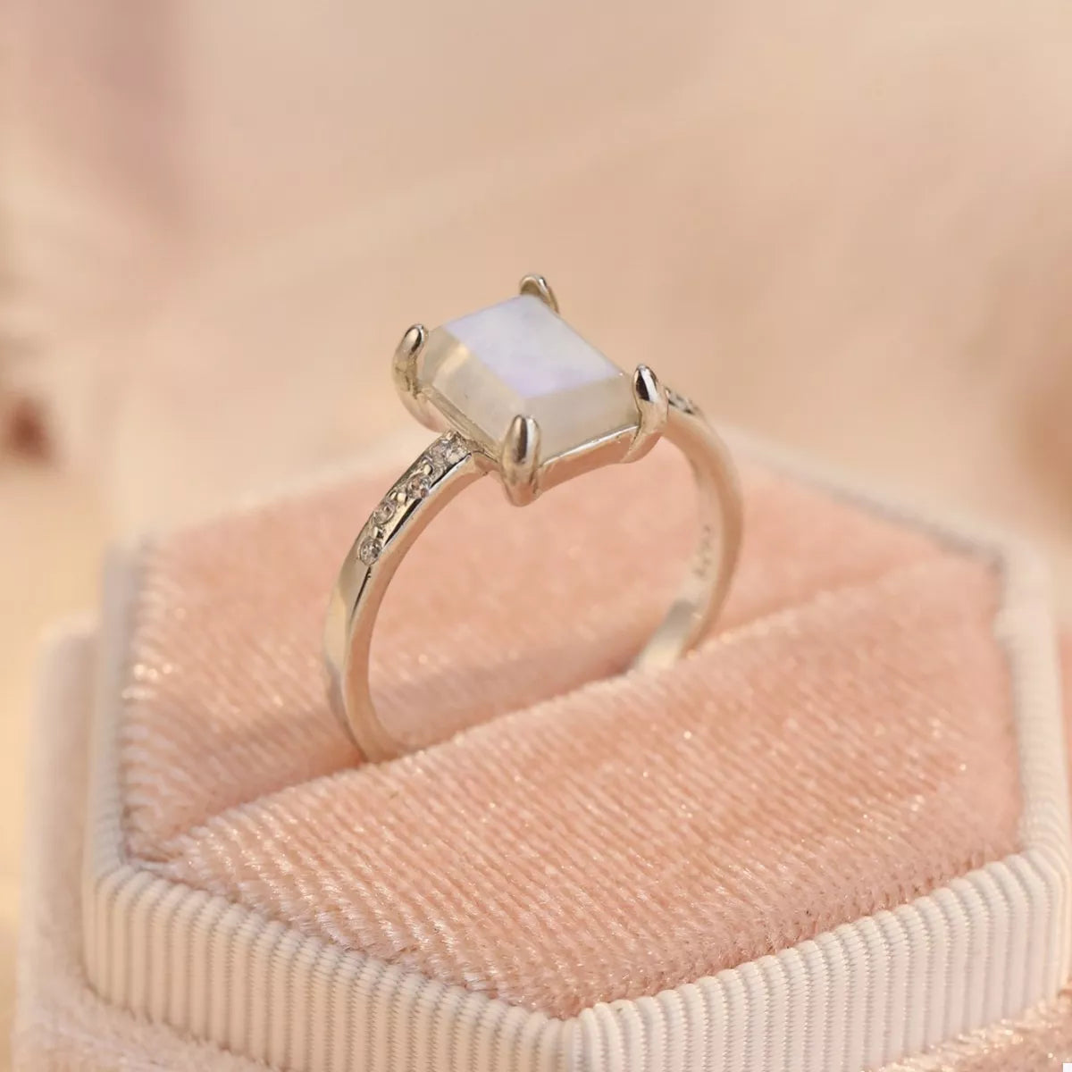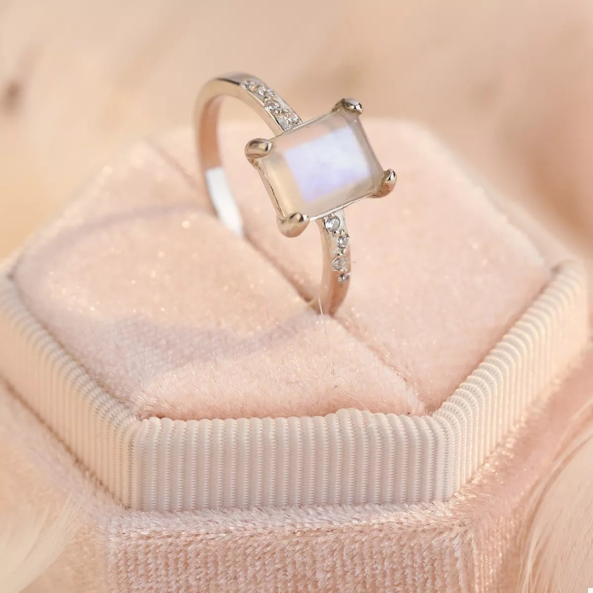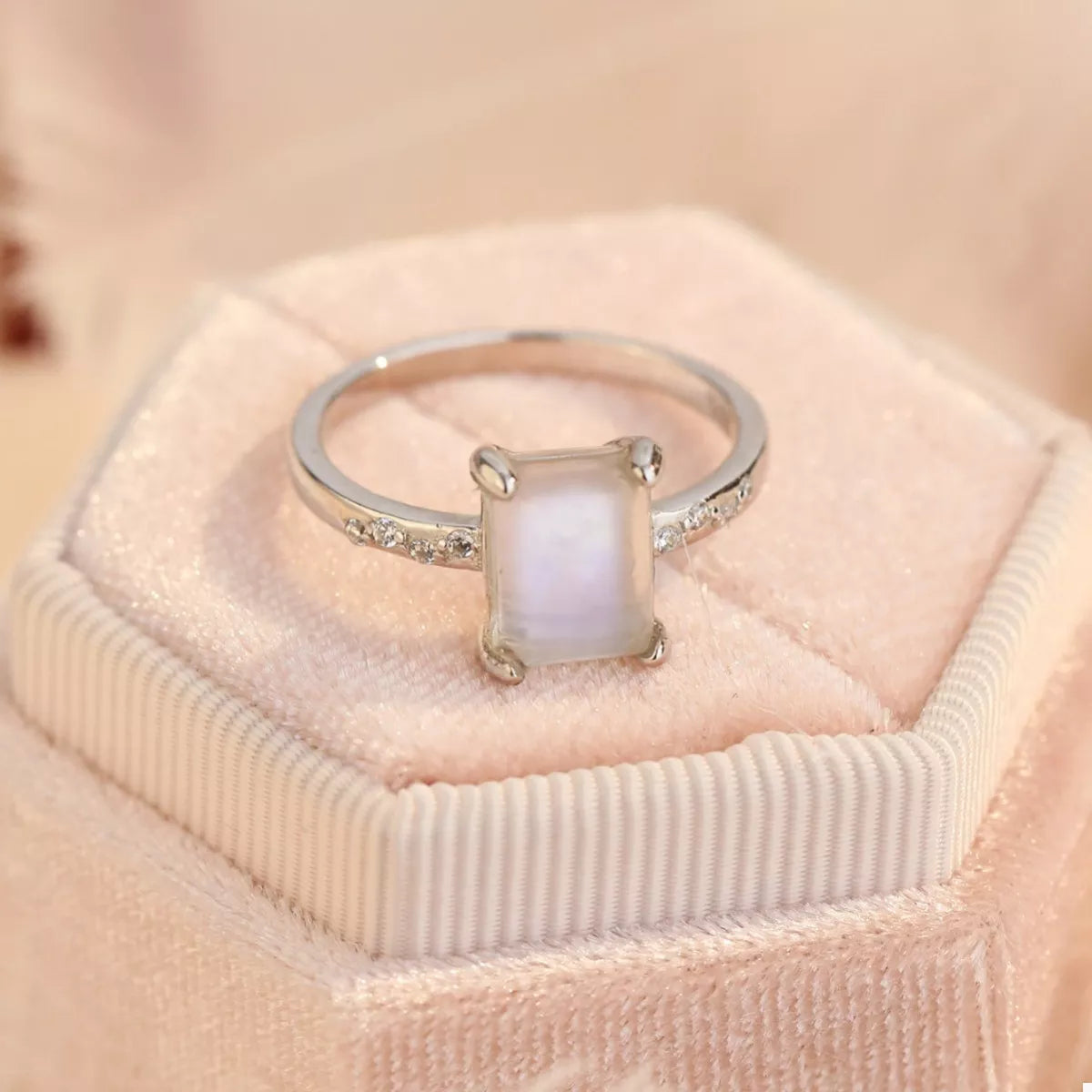 Moonstone 925 Sterling Silver Zircon Round Ring