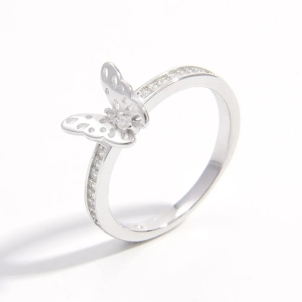 925 Sterling Silver Inlaid Zircon Butterfly Ring -