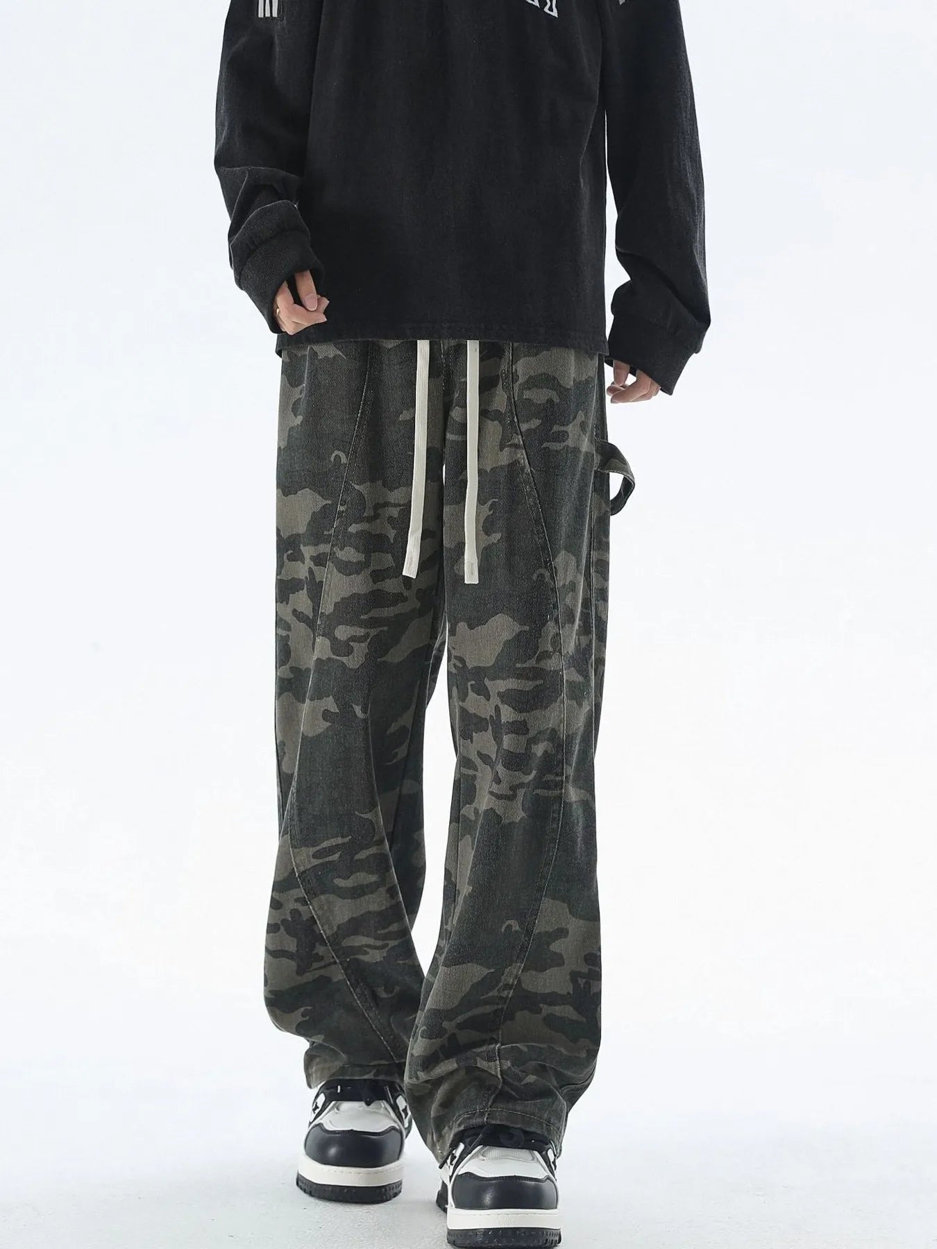 Men's Plus Size Camouflage Cargo Pants with Drawstring -