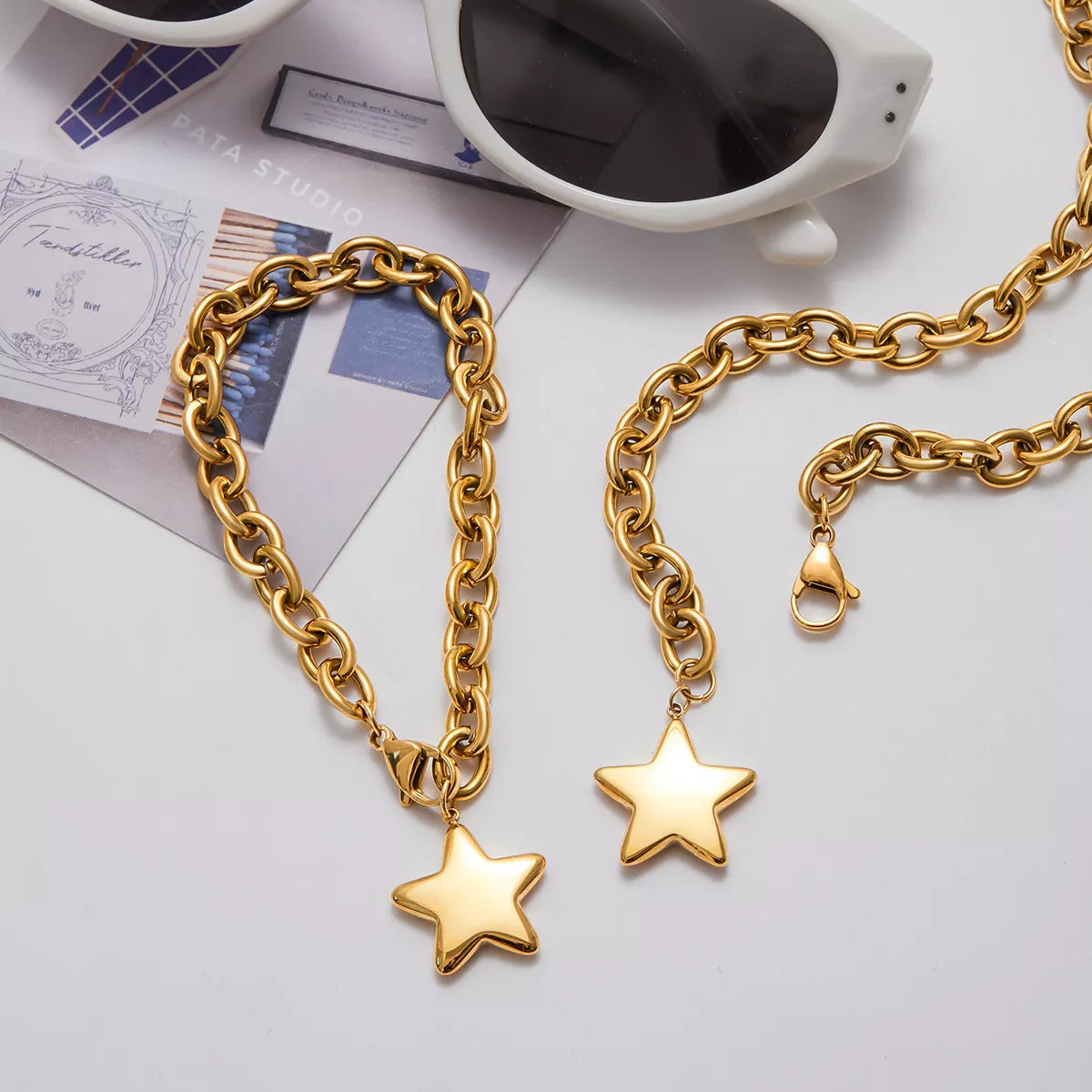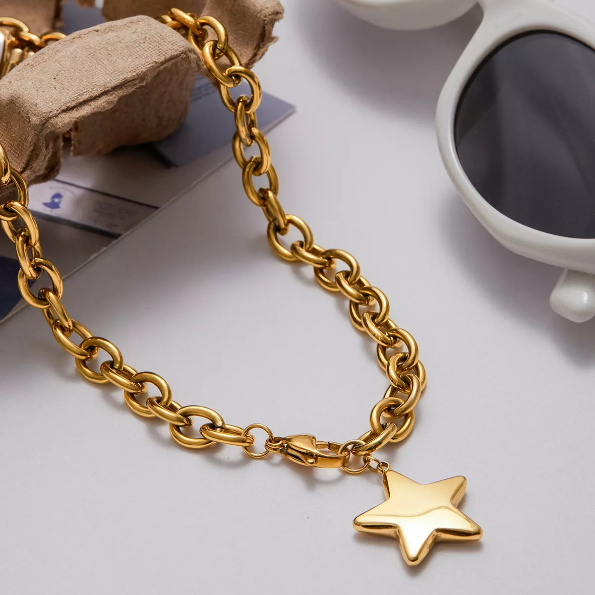 18K Gold-Plated Moon and Star Gold Chain Necklace -