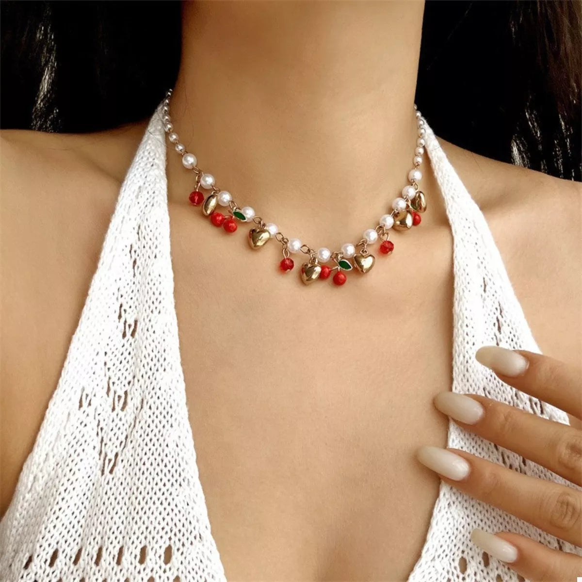 18K Gold-Plated Cherry & Heart Pearl Necklace -