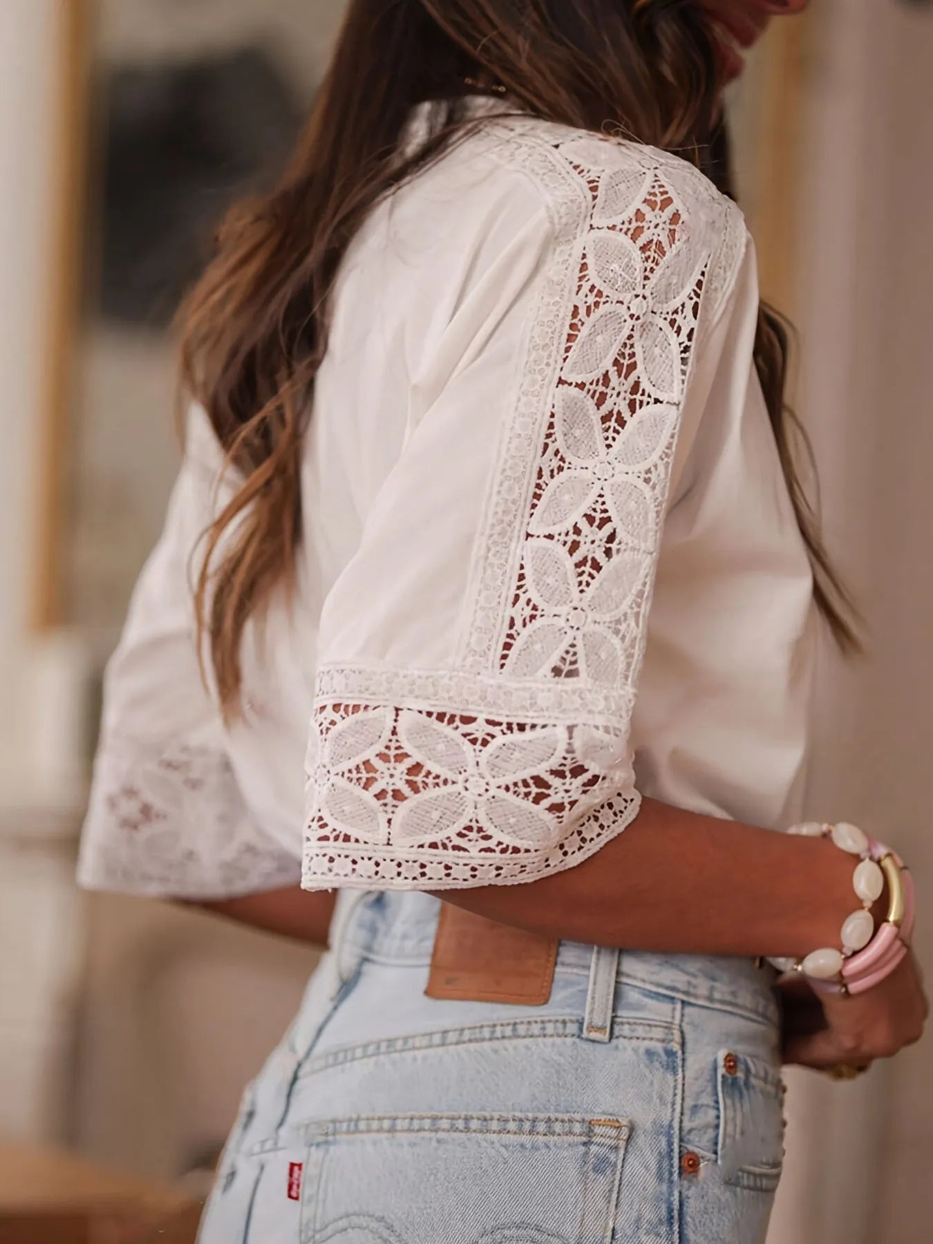 Plus Size Embroidered V-Neck Flutter Sleeve Blouse -