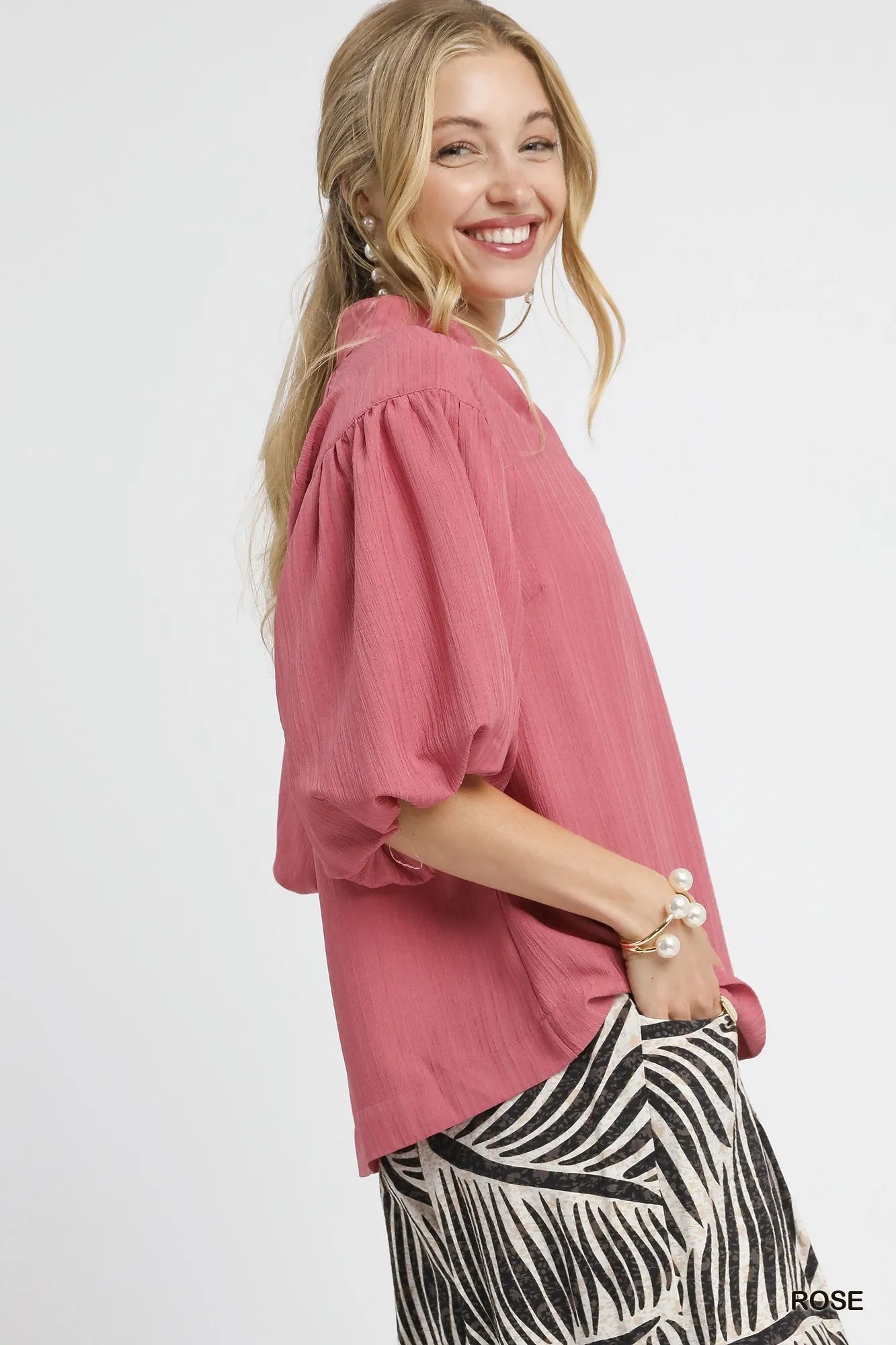 Umgee Textured Puff Sleeve Blouse -