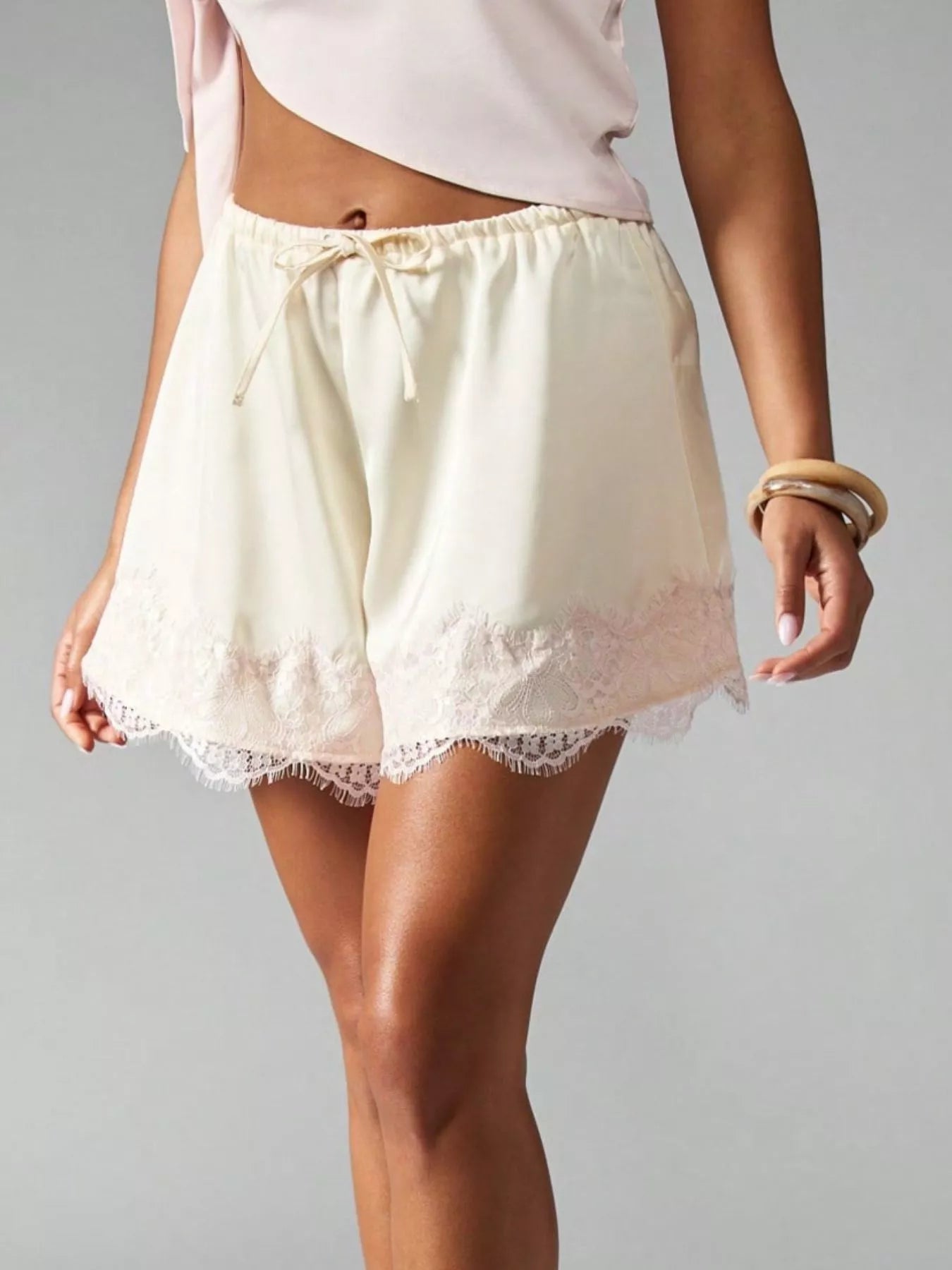 Lace Trim Drawstring Casual Shorts -