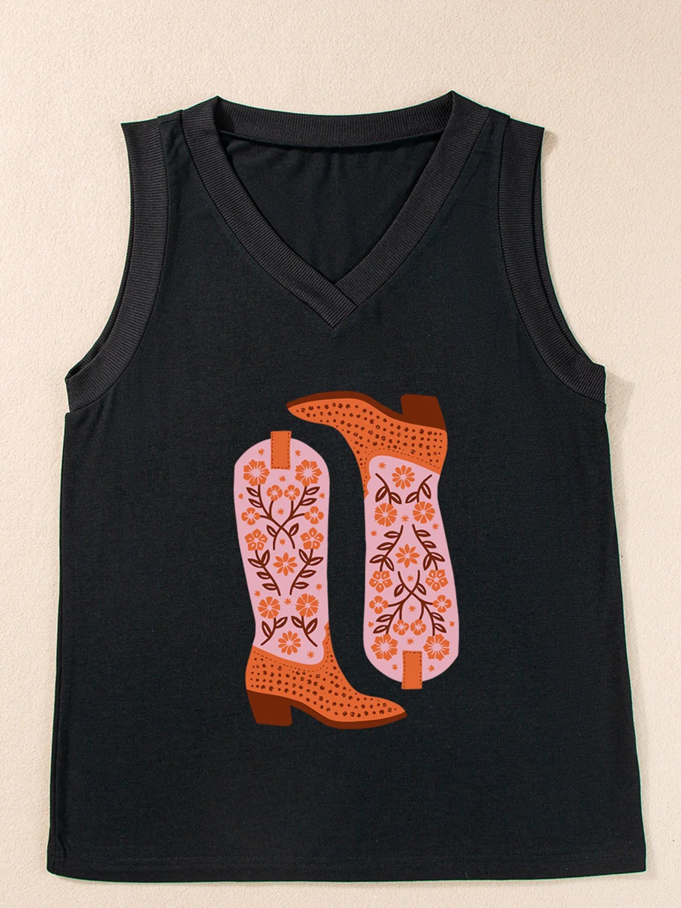 Cowgirl Floral Boots Printed Tank Top -