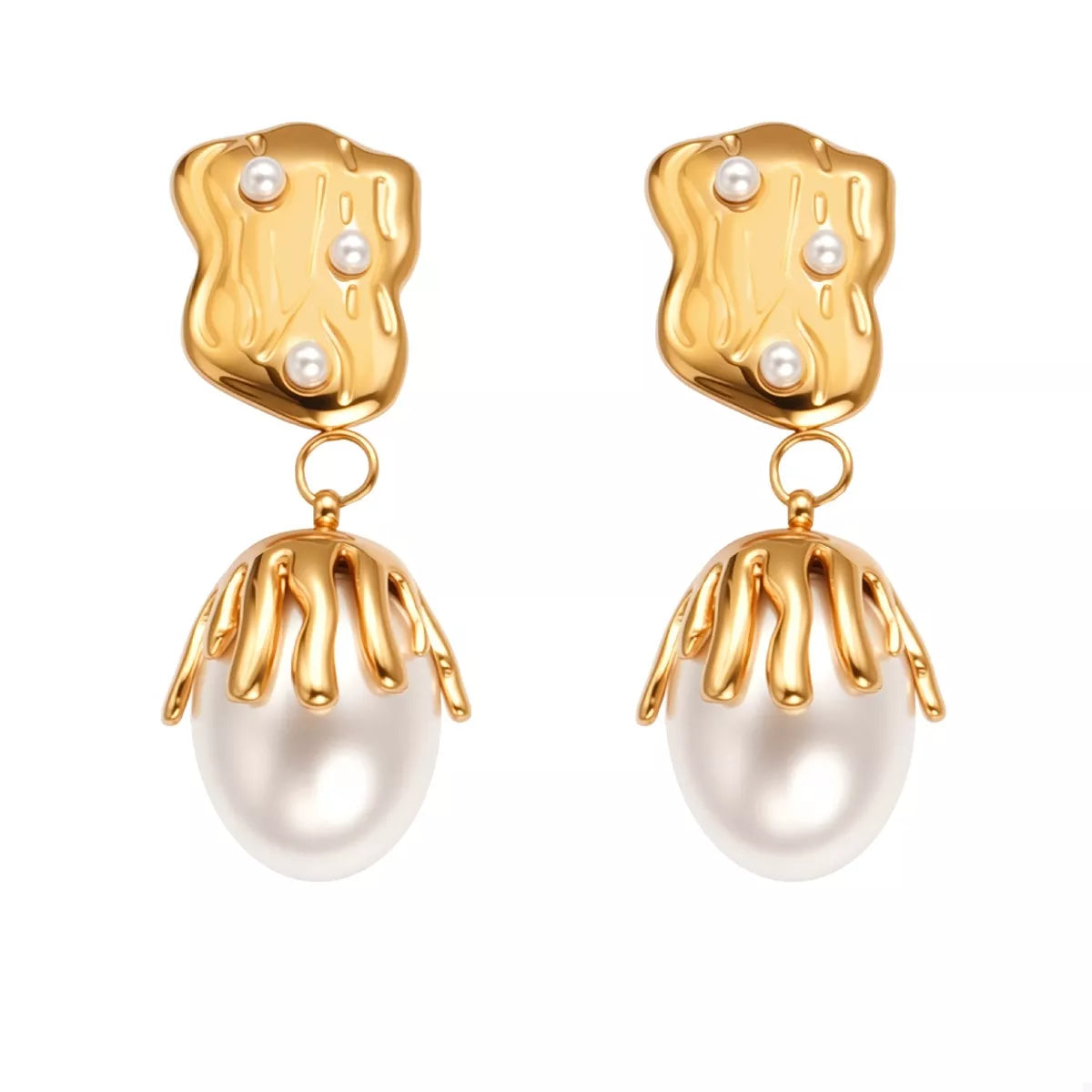 - Material:Synthetic Pearl,18K Gold-Plated,Stainless Steel